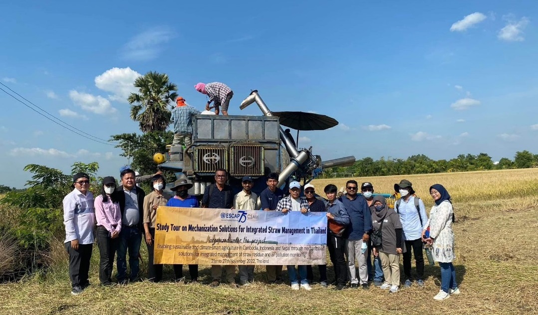 27 November 2022: The Centre for Sustainable Agricultural Mechanization (CSAM) of the United Nations Economic and Social Commission for Asia and the Pacific (ESCAP) successfully organized a ‘Study Tour on Mechanization Solutions for Integrated Straw Management in Thailand’ under its project ‘Enabling sustainable and climate-smart agriculture in Cambodia, Indonesia and Nepal through mechanization solutions for integrated management of straw residue and air pollution monitoring’ from 21 to 27 November 2022 in Bangkok and Chainat Province, Thailand. The project is financially supported by the China-ESCAP Cooperation Programme.