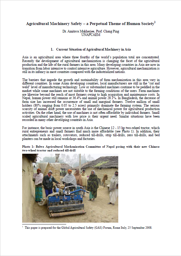 Agricultural Mechanization at A Glance -- Selected Country Studies in Asia on Agricultural Machinery Development